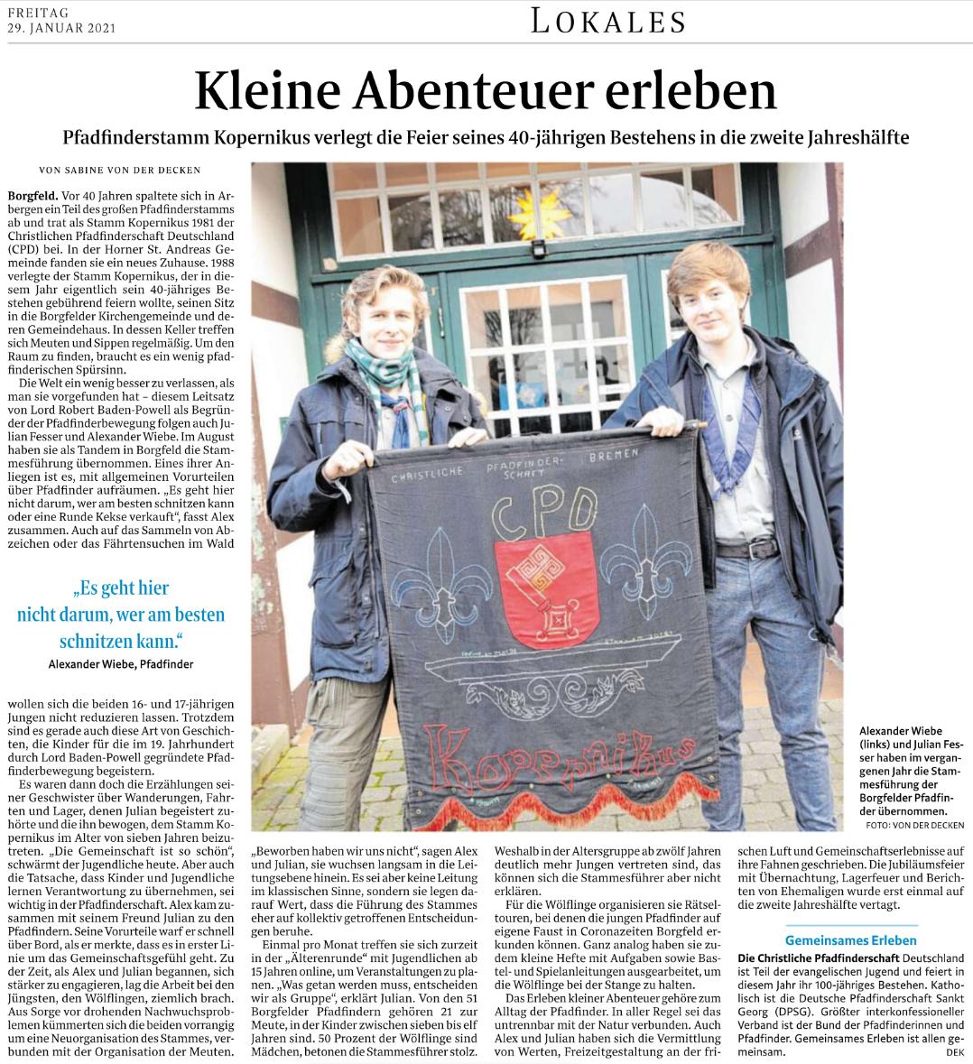 20.01.2021. Die Pfadfinder in Borgfeld wer-